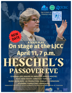 The J — in partnership with Temple Beth-El, Temple Emanu-El, and the Jewish Community Relations Council — is offering a unique opportunity to see Heschel’s Passover Eve, a solo performance that takes an intimate “behind-the-scenes” look at a special seder hosted by Rabbi Dr. Abraham Joshua Heschel and to which he has invited his friend and traveling companion Dr. Martin Luther King Jr.