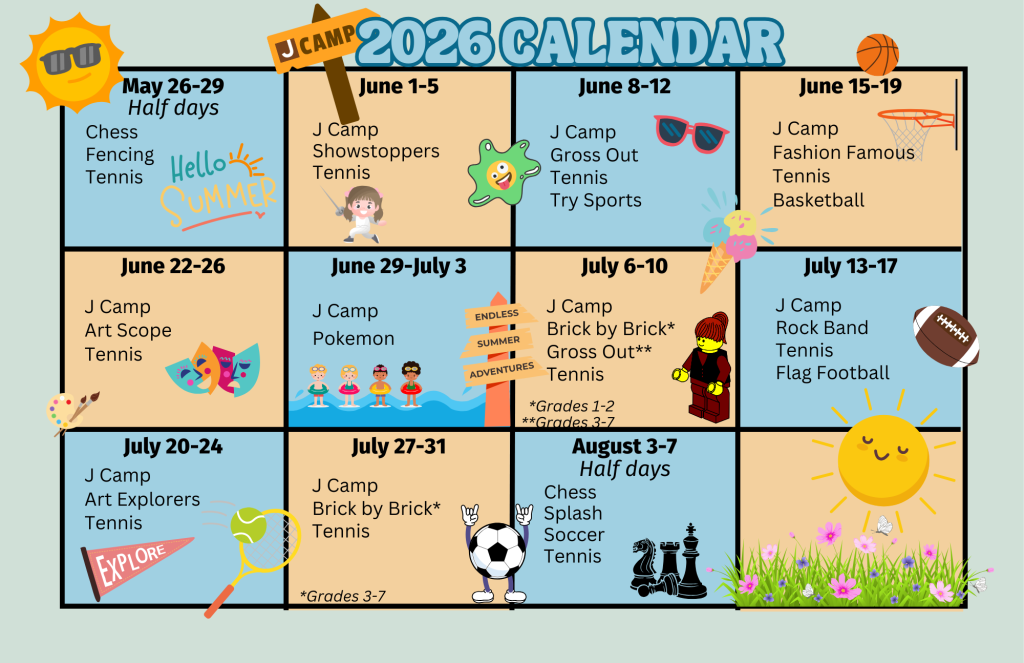 J Camp runs May 26–August 7, offering flexible week-by-week enrollment plus before- and after-camp care to fit busy family schedules. Spots are already filling quickly, so now is the perfect time to learn more and sign up.